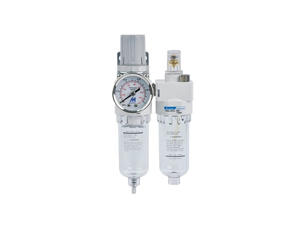 加长杯型,组件: MAFR200L, MAL200L,配管口径尺寸: 1/8, 1/4,使用压力范围: 0.05~1 MPa,耐压力: 1.5 MPa。