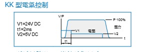 纵轴 V/P:V 代表驱动电压,P 代表阀的输出气动压力(对应阀的开关状态)
