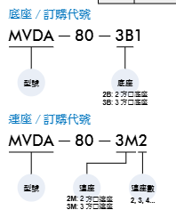 多阀连座:MVDA-80-□M*,□填 22/2/3 对应 2 通 / 3 通阀,末尾数字填连座位数(2~10)
