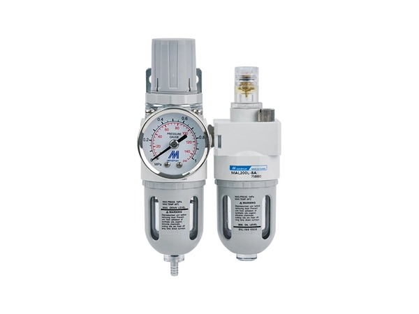 组件: MAFR200, MAL200,配管口径尺寸: 1/8, 1/4,使用压力范围:0.05~1 MPa,耐压力: 1.5 MPa。